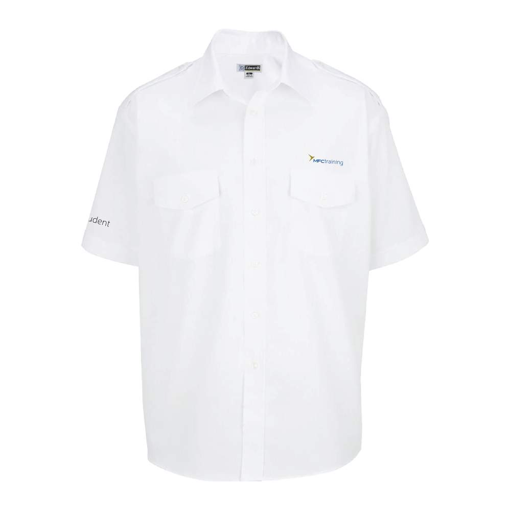 This short sleeve pilot shirt is built for performance and comfort. Made from a durable poly-cotton blend, it features moisture-wicking, wrinkle resistance, and UPF protection. The MFC Training logo is embroidered on the left chest, and "Student" is embroidered on the right sleeve, making it a sharp and functional part of the official flight school uniform.
